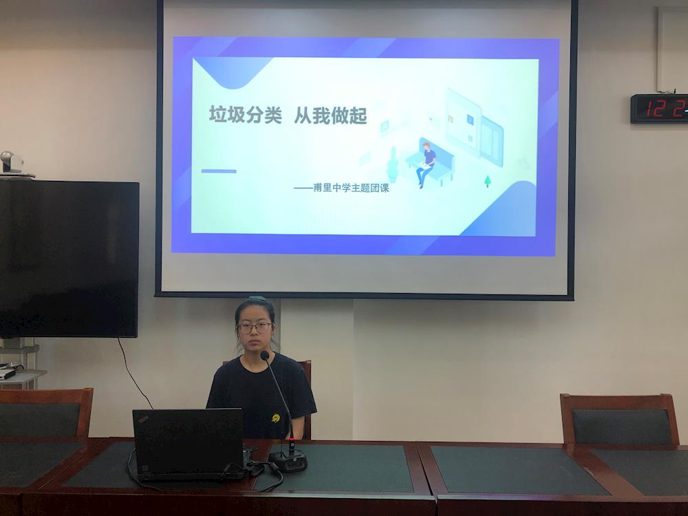 2019年10月25日,苏州市十六届人大常委会第二十二次会议审议通过了《苏州市生活垃圾分类管理条例》,并于2020年6月1日起正式启动实施。为了积极响应环保的号召,进一步加强全体团员垃圾分类的意识,甫里中学团委开展了“垃圾分类,从我做起”主题团课活动。本次团课由初三年级1班团支部书记法星玥同学主讲,团委书记王冬虹老师主持。