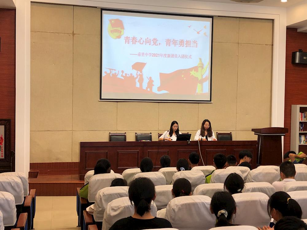 为进一步加强共青团员组织意识教育,增强共青团员的组织荣誉感,凝聚团组织活力,2021年6月4日,甫里中学校团委在阶梯教室举行了2021年度新团员入团仪式。仪式由团委副书记彭德晶老师主持。