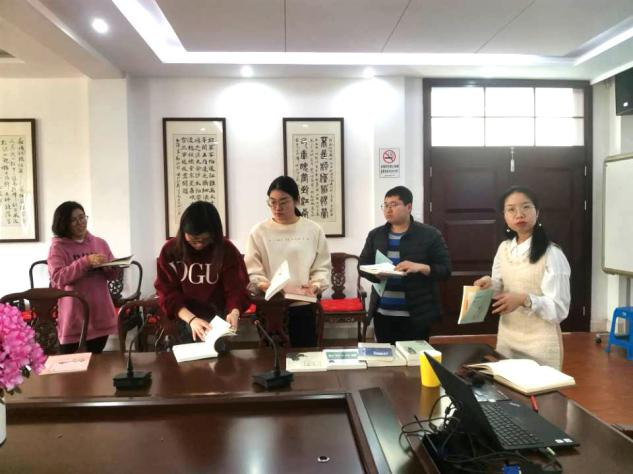 “学而不厌,诲人不倦。”身为人师,学习读书尤应不停。只有持续地学习,才有深度研究的后劲。为了让老师们加强理论学习,更好掌握吟诵的知识和技巧,丁老师采购了一些关于陶研与吟诵的书籍,每位成员从中选择两本自学,并将在下一次课题组活动时换书阅读,交流分享读书心得。