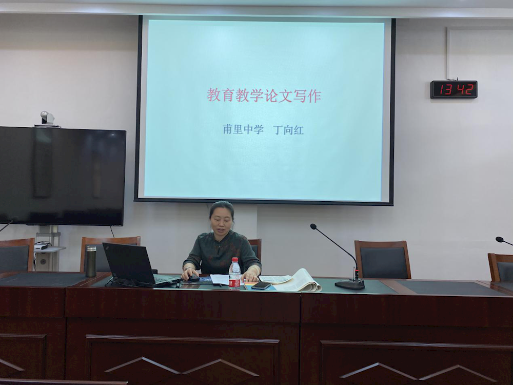 最后丁老师做了题为《教育教学论文写作》的讲座,她向在座的新教师们阐述了教育论文的格式、类型和特点,并举例说明一篇优秀的论文需要具备哪些特点。丁老师用“做”、“养”、“改”这三个字来总结个人的写作体会,在座的新教师们受益匪浅,收获颇丰。