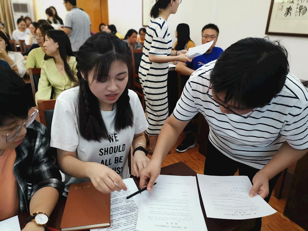 会议的第三个议程是由陆主任宣读2020年新教师教学对子名单,由俞主任宣读班主任对子名单,师徒一一起身确认,氛围严肃而温馨。之后,唐薇老师作为2020年新教师代表发言,言辞中,既有对新环境的陌生与挑战的感知,又表露了对未来教学生涯的憧憬与信心!