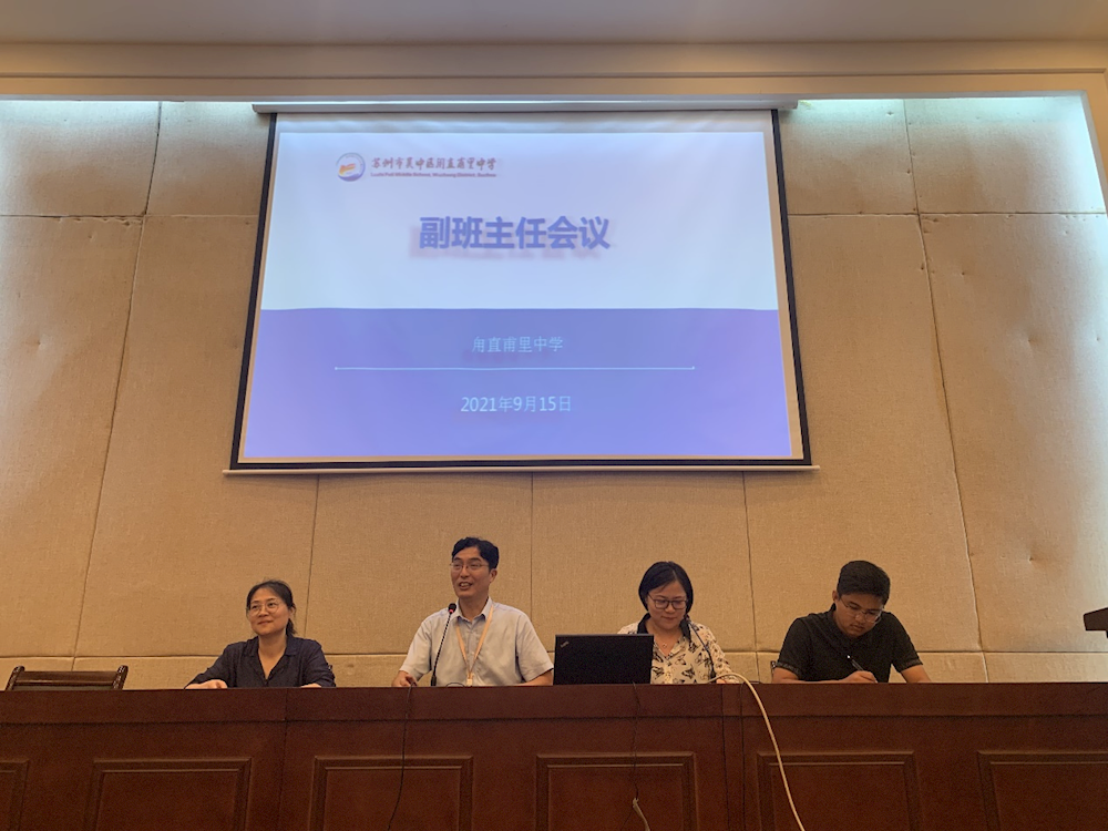 为了推动学校班主任队伍建设,明确副班主任工作职责,促进副班主任成长,2021年9月10日下午15:10,甪直甫里中学德育处召开了2021-2022年度副班主任工作会议。会议由德育处副主任凌燕主持,参会人员有:校长陈龙生、德育处主任俞静芳、德育处副主任邹翔以及2021年度全体副班主任。