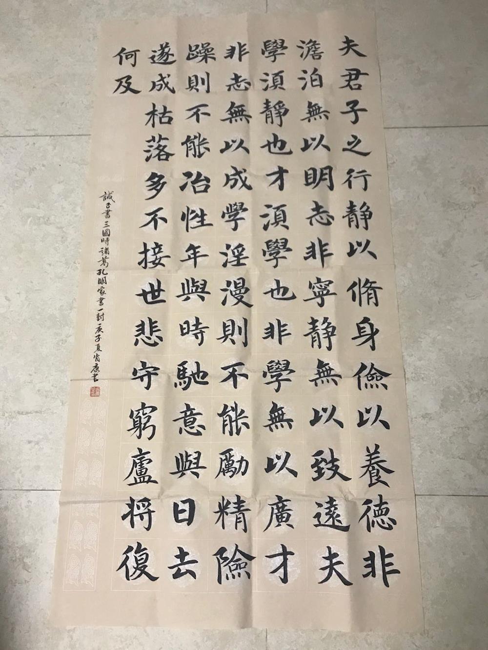 肖康自述:我10岁开始书法学习,至今约有4年久之久。起初学习曹全碑,后学习颜真卿的楷书和赵孟頫的行书,在开始的那段时间一直以为努力练习才是成学之道。后来年级稍长才知道“听”有时比“练”更为重要。书法也不仅指的是字写得好,也是一个人心境涵养的象征。当我真正沉浸在书法中时,或许我一周中最放松的时刻。这也是我由衷喜爱书法的原因之一。