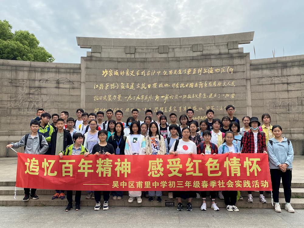 5月18日,万木葱茏,微风和煦,甪直甫里中学副校长许良携初三年级教师、学生共赴爱国主义教育基地沙家浜进行社会实践活动。