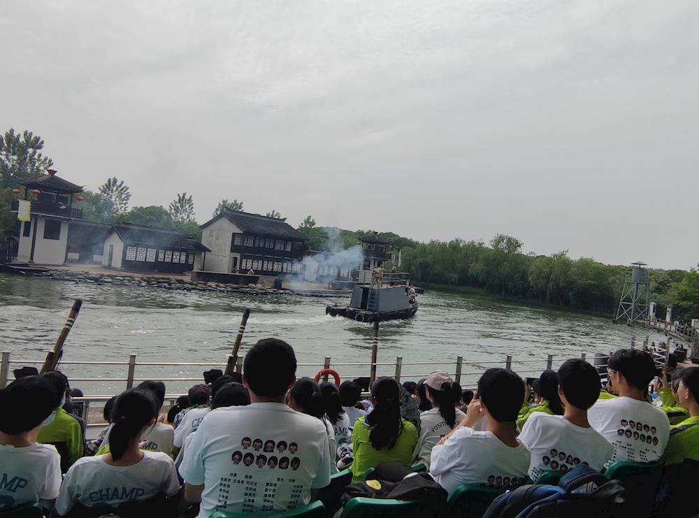 最后,学生们集中观看了大型实景剧《让子弹飞》。全场学生目不转睛,看到阿庆嫂与新四军里应外合,为了保护革命火种和创建革命根据地,与日伪顽匪斗智斗勇,不禁拍手叫好。学生身临其境地感受到了英勇的新四军和沙家浜民众与日本侵略者展开殊死搏斗,更加深刻地理解他们的鱼水情深。