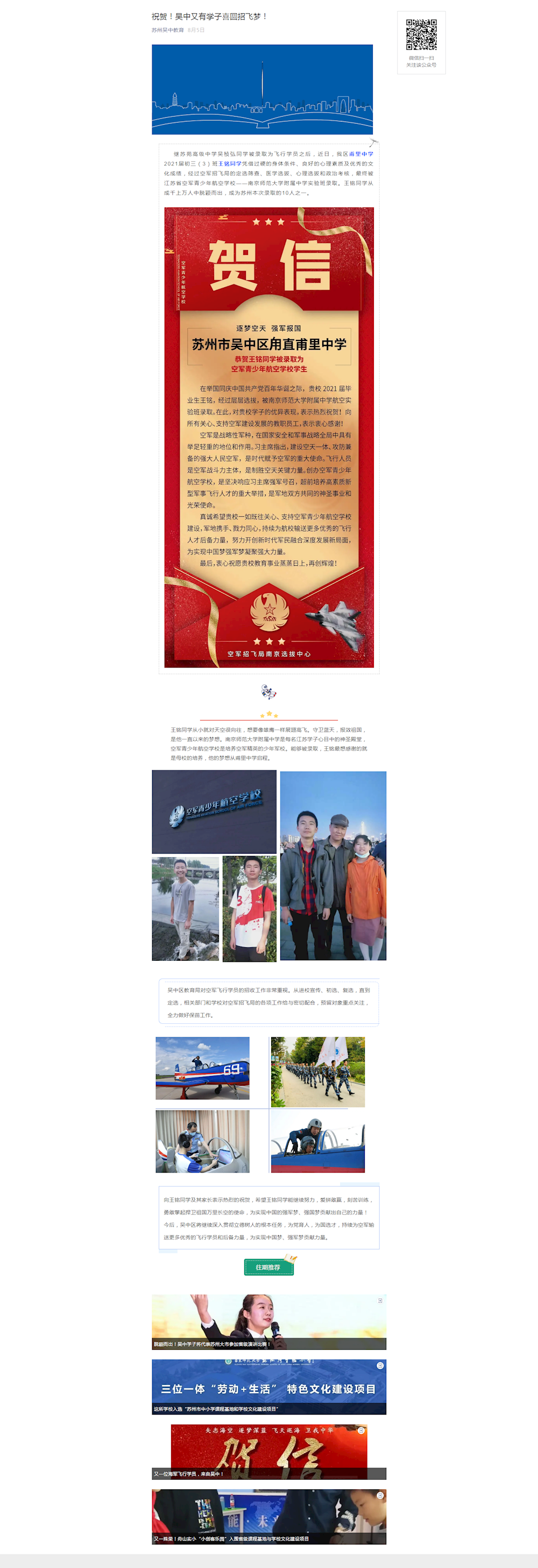 甫中学子喜圆招飞梦!