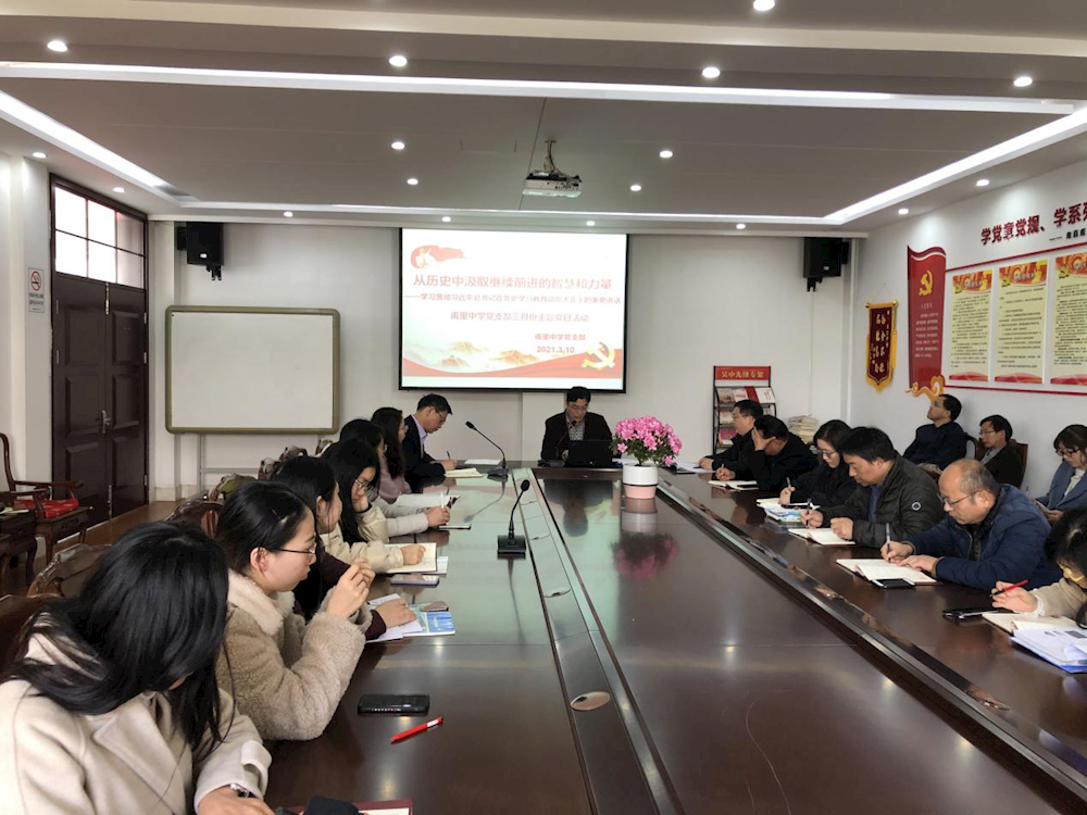 随后,开展党员冬训工作,重点学习贯彻习近平总书记在党史学习教育动员大会上的重要讲话精神。习总书记的重要讲话深刻阐述了党史学习教育的重大意义,为开展好党史学习教育指明了方向,提供了根本遵循。陈书记要求全体党员教师在“学”上务求实效;在“悟”上入脑入心;在“干”上担当作为,通过党史学习教育,弘扬优良传统,砥砺初心使命,立德树人、做好学生引路人,争做“四有”好教师,向党和人民交出满意答卷。广大党员教师表示,要深入学习贯彻习总书记重要讲话精神,以优异成绩迎接建党一百周年。