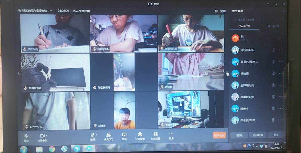 这次学校做中考考场,孩子放假4天,临近期末,作业又多,其中有3天都是家长正常的上班时间,没法监控到孩子是否认真做作业。我们家长心急如焚,不知该如何解决这一难题。在这个困难时刻,班主任张亮群老师站了出来。由于身体不适,张老师没有参与此次中考监考,拖着病体,她在钉钉上开视频会议模式,孩子们参加视频会议,手机摄像头对准正在写作业的孩子,她在线帮我们看孩子做作业。孩子走神开小差了,笔很久不动了,半天看不见人了,她都会提醒,还在线解答孩子们的作业问题。下班后查了一下,孩子写作业效率很高。这四天里,每天张老师都开视频会议,帮我们监督孩子写作业,付出了大量的时间和精力,我们衷心的感谢她,为孩子们能有幸遇到这么认真负责的老师而感到高兴。