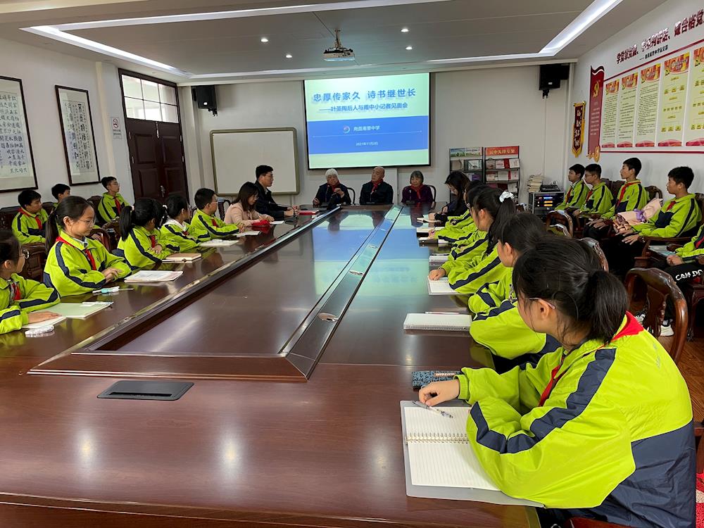 11月2日,甫里中学邀请到了来甪直寻根访祖的叶圣陶家人,他们是叶永和老师,叶小沫老师和蒋燕燕老师。刚一下车,热情的同学献上鲜花,为他们带上红领巾,鹤发童颜的老者,生机勃勃的少年,同框留下美好瞬间。