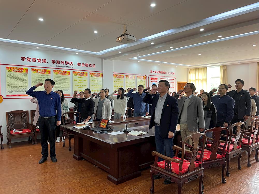 会上,首先讨论了预备党员顾惠霞同志转正事宜,经无记名投票表决,一致同意顾惠霞同志按期转正。随后,学校党支部书记陈龙生作了传达学习贯彻市十三次党代会精神专题报告。陈书记要求全体教师深入学习、广泛宣传、认真贯彻,坚守政治信仰,把握政治方向,站稳政治立场,立足本职岗位,增强使命担当,为培养更多担当民族复兴大任的时代新人而不懈努力。与会党员教师纷纷表示,一定会认真学习贯彻此次党代会精神,自觉扛起发展使命,为吴中教育发展贡献甫里力量。