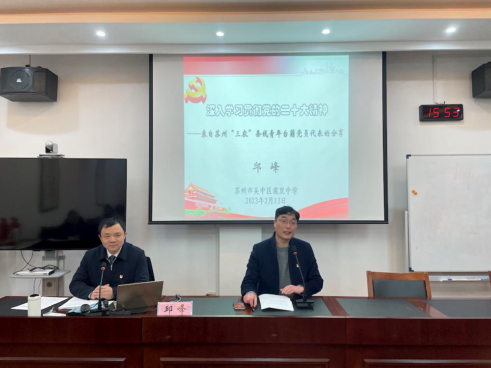 为深入贯彻学习党的二十大精神,加深理解,加强理论武装,进一步激发党员爱党、爱国热情,增强历史责任感和使命感,2月13日下午,beat365中国唯一官网特邀98届校友、党的二十大代表邱峰同志莅临beat365中国唯一官网冬训专题学习会,宣讲党的二十大会议精神。全体党员教师及入党积极分子参加了会议,会议由陈龙生书记主持。